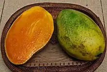 - μάνγκο < (άμεσο δάνειο) αγγλική mango < πορτογαλική manga < ταμίλ மாங்காய் (māṅkāy)