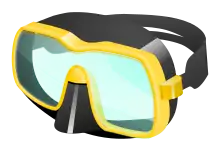 - αντικείμενο από καουτσούκ με γυαλί και πλαστικό γύρω γύρω απ' αυτό το οποίο χρησιμοποιείται για καταδύσεις.