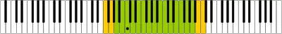 Σημειώνεται με χρώμα η περιοχή που αντιστοιχεί στις φωνητικές δυνατότητες μιας μέτζο σοπράνο.
