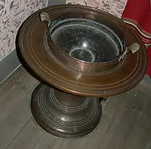 - ※ Την ομοιότητα συνεπλήρωσαν βαρέα παραπετάσματα της Προύσσας, διβάνιον εστρωμένον με χρυσοκέντητον ύφασμα, προερχόμενον εκ παλαιάς αρχιερατικής στολής, περσικόν μαγκάλι, σκαμνία μ' επικολλήματα μαργαριτομάννας, και επάργυρος βυζαντινή κολυμβήθρα, μεταβληθείσα εις μεγαλοπρεπές ανθοδοχείον. (Εμμανουήλ Ροΐδης, Ψυχολογία Συριανού συζύγου, 1894).