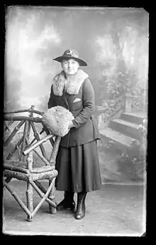 Γυναίκα με τα χέρια της σε μανσόν, περίπου 1915
