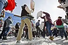 - μαξιλαροπόλεμος < μαξιλάρ(ι) + -ο- + -πόλεμος