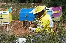 - (ελληνιστική κοινή) (επάγγελμα) που ασχολείται με τη μελισσοκομία, μελισσοτρόφος