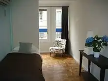 - δωμάτιο σε ξενοδοχείο, πανσιόν κλπ που έχει ένα μόνο κρεβάτι, που προορίζεται για ένα μόνο άτομο