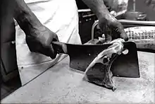 - είδος τσεκουριού (ή μαχαιριού κατά άλλους) που χρησιμοποιείται κυρίως στον τεμαχισμό κρεάτων