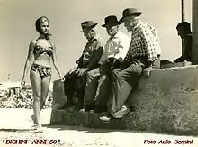 Γυναίκα με μαγιό μπικίνι σε παραλία της Ιταλίας την δεκαετία του 1950.