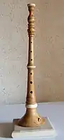 - (παρωχημένο, μουσικό όργανο) μεσαιωνικό πνευστό μουσικό όργανο που έμοιαζε με όμποε ή φαγκότο