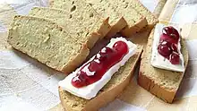 - (τρόφιμο) ψωμί που παρασκευάζεται από καλαμποκάλευρο