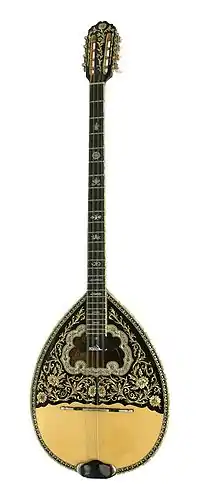 - (μουσικό όργανο) έγχορδο μουσικό όργανο με τρεις ή τέσσερις διπλές χορδές