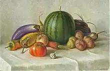 - (ζωγραφική) πίνακας που παριστάνει άψυχα πράγματα, απλά καθημερινά αντικείμενα, φρούτα, λουλούδια