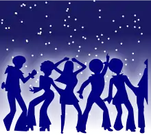 - (μουσική) χορευτική μουσική που ξεκίνησε από την αγγλική-αμερικανική μουσική σκηνή· ήταν παγκοσμίως δημοφιλής από τα τέλη της δεκαετίας του 1970 μέχρι τα μέσα της δεκαετίας του 1980