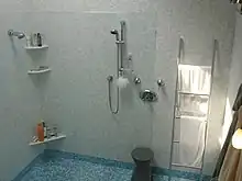 - συσκευή στην οποία εκτοξέυεται νερό με πίεση για το πλύσιμο του σώματος κάποιου