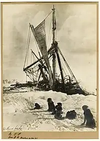 - Λεζάντα φωτογραφίας που διακοσμεί το άρθρο «Μία διετία εις τους ανταρκτικούς πάγους», στην εικονογραφημένη ελληνική έκδοση των ΗΠΑ Ατλαντίς (Φεβρουάριος 1917), σ. 8.