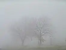 - (μετεωρολογία) μετεωρολογικό φαινόμενο κατά το οποίο μεγάλη μάζα υδρατμών που έχει κατέβει πολύ κοντά στο έδαφος περιορίζει αισθητά την ορατότητα