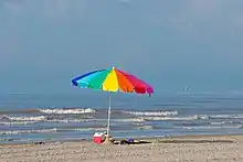- ομπρέλα θαλάσσης: ομπρέλα με μεγάλης συνήθως διαμέτρου υφασμάτινο κάλυμμα που στερεώνεται στην άμμο και προστατεύει τους λουόμενους από τον ήλιο