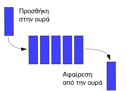 - (πληροφορική) βασική δομή δεδομένων, όπου η παλαιότερη εισερχόμενη (first in) οντότητα (στοιχείο/δεδομένο), αφαιρείται πρώτη (first out)[1]