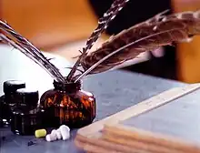 πένες (2) από φτερό σε μελανοδοχείο