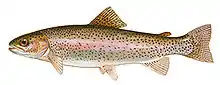- πέστροφα < (άμεσο δάνειο) βουλγαρική пъстърва (păstắrva, παρδαλή)