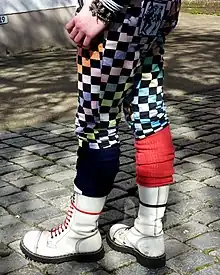 - (ενδυμασία) κάθε εξωτερικό ρούχο που καλύπτει χωριστά το κάθε πόδι (περισκελίδα)