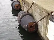 - (ναυτικός όρος) ειδική (λαστιχένια ή από άλλο υλικό) κατασκευή που προφυλάσσει τα πλοία από την πλευρική σύγκρουση με άλλο πλοίο ή την προβλήτα