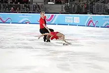 ζευγάρι συμμετέχει σε αγώνες πατινάζ