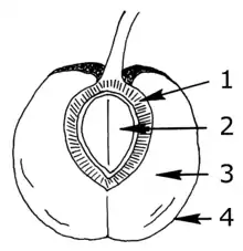 περικάρπιο(1): 1.ενδοκάρπιο, 3.μεσοκάρπιο, 4.εξωκάρπιο ή επικάρπιο. Το (2) είναι το σπέρμα (δεν ανήκει στο περικάρπιο).