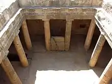 - (αρχιτεκτονική, αρχαιολογία) κιονοστοιχία και στοά γύρω από οικοδόμημα