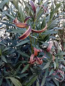 - (βοτανική, λουλούδι) αειθαλής θάμνος ή μικρό δέντρο (λατινικό όνομα Nerium oleander) με λογχοειδή σκουροπράσινα φύλλα και ροδαλά άνθη· όλα τα μέρη της είναι εξαιρετικά δηλητηριώδη