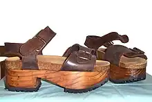 Ένα ζευγάρι καφέ πλατφόρμες.