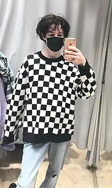 Γυναίκα με ασπρόμαυρο καρό πουλόβερ.
