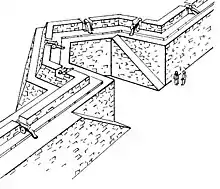 - προεξέχον τμήμα τείχους, οχύρωσης, τάπια ή ντάπια
