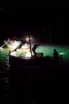 - ειδική πλατφόρμα πάνω σε αλιευτικό σκάφος, στην οποία τοποθετείται φανάρι, για να προσελκύονται τη νύχτα με το φως του τα ψάρια