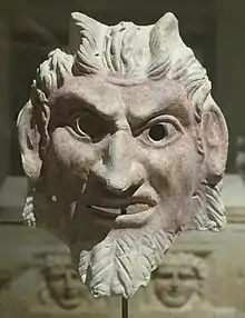 - (ελληνική μυθολογία) ακόλουθος του Διονύσου· απεικονίζεται συχνά με πόδια και ουρά τράγου, μυτερά αφτιά και σε στύση