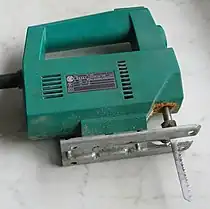 - (εργαλείο) μηχανικό ή χειροκίνητο πριόνι, φορητό ή σταθερό, με λεπτή λάμα για κοπή σχημάτων ή σχεδίων σε επιφάνειες (κατά κανόνα ξύλινες)