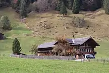 - σαλέ < (λόγιο δάνειο) γαλλική chalet[1]