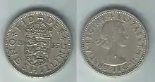 - (παρωχημένο) νόμισμα που χρησιμοποιούνταν παλιότερα στο Ηνωμένο Βασίλειο, ίσο με το 1/12 της στερλίνας και με 12 παλαιές πένες