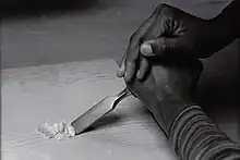 - μεταλλικό εργαλείο με ξύλινη λαβή, παρόμοιο με τη σμίλη, για την επεξεργασία του ξύλου