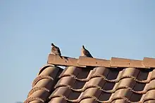 - σκελετός από ξύλο που καλύπτεται με κεραμίδια, πλάκες ή άλλα υλικά και στεγάζει ένα οικοδόμημα.