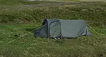 - κατασκευή από ύφασμα με εύκαμπτο ή άκαμπτο σκελετό που συναρμολογείται στην ύπαιθρο για να χρησιμεύσει ως πρόχειρο κατάλυμα