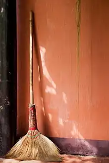 σκούπα απου στηρίζεται σε τοίχο από το σκουπόξυλό της