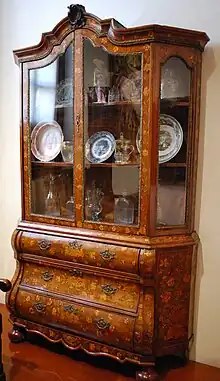 - έπιπλο του οποίου το κάτω μέρος μοιάζει με μπουφέ και στο πάνω μέρος έχει βιτρίνα στην οποία τοποθετούν κρύσταλλα και λοιπά σκεύη προς φύλαξη αλλά και έκθεση