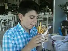 - (γαστρονομία) (στη νότια Ελλάδα και ιδίως στην Αθήνα) γενική ονομασία για κάθε είδους πρόχειρο φαγητό που αποτελείται από ειδική πίτα για σουβλάκια, τυλιγμένη, που μέσα μπορεί να περιέχει κρέας από σουβλάκι ή γύρο ή μπιφτέκι και άλλα συμπληρωματικά υλικά (συνήθως ντομάτα, κρεμμύδι και τζατζίκι)
