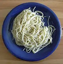 - (φαγητά) είδος μακαρονιού, ιταλικής προέλευσης, που είναι πολύ λεπτό και μακρόστενο