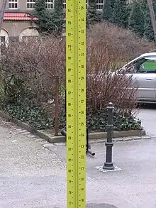- ίσιο όργανο, με ενδείξεις, που χρησιμοποιείται για να μπορούν να υπολογίζονται αποστάσεις μέσω ενός σταδιόμετρου