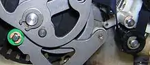 Τέσσερις δακτύλιοι συγκράτησης εντοπίζονται στη συγκεκριμένη μηχανή. Κοιτώντας από τα αριστερά προς τα δεξιά, ο πιό ευδιάκριτος δάκτυλος συγκράτησης είναι χρυσός πάνω στην πράσινο αποστάτη, ο δεύτερος είναι ο γκρι δάκτυλος συγκράτησης πάνω σε γκρι επιφάνεια, ο τρίτος είναι ο γκρι δάκτυλος συγκράτησης σε λευκή επιφάνεια και ο τέταρτος ο γκρι δάκτυλος συγκράτησης σε μαύρη τροχαλία.