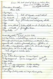 Χειρόγραφη συνταγή για γλυκό.