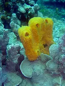 ένα κίτρινο σφουγγάρι του βυθού