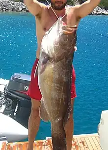 - (ψάρι) μεγάλο ψάρι (Επινέφελος ο χαλκούς, Epinephelus Aeneus) με νόστιμο κρέας