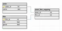Σχεδιάγραμμα με τρεις πίνακες και τις στήλες τους, που συσχετίζονται μεταξύ τους μέσω των στηλών actor_id και film_id