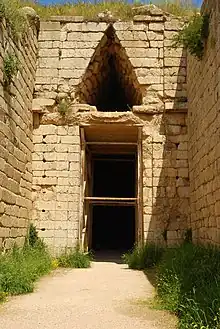 Η είσοδος του τάφου της Κλυταιμνήστρας στις Μυκήνες.
